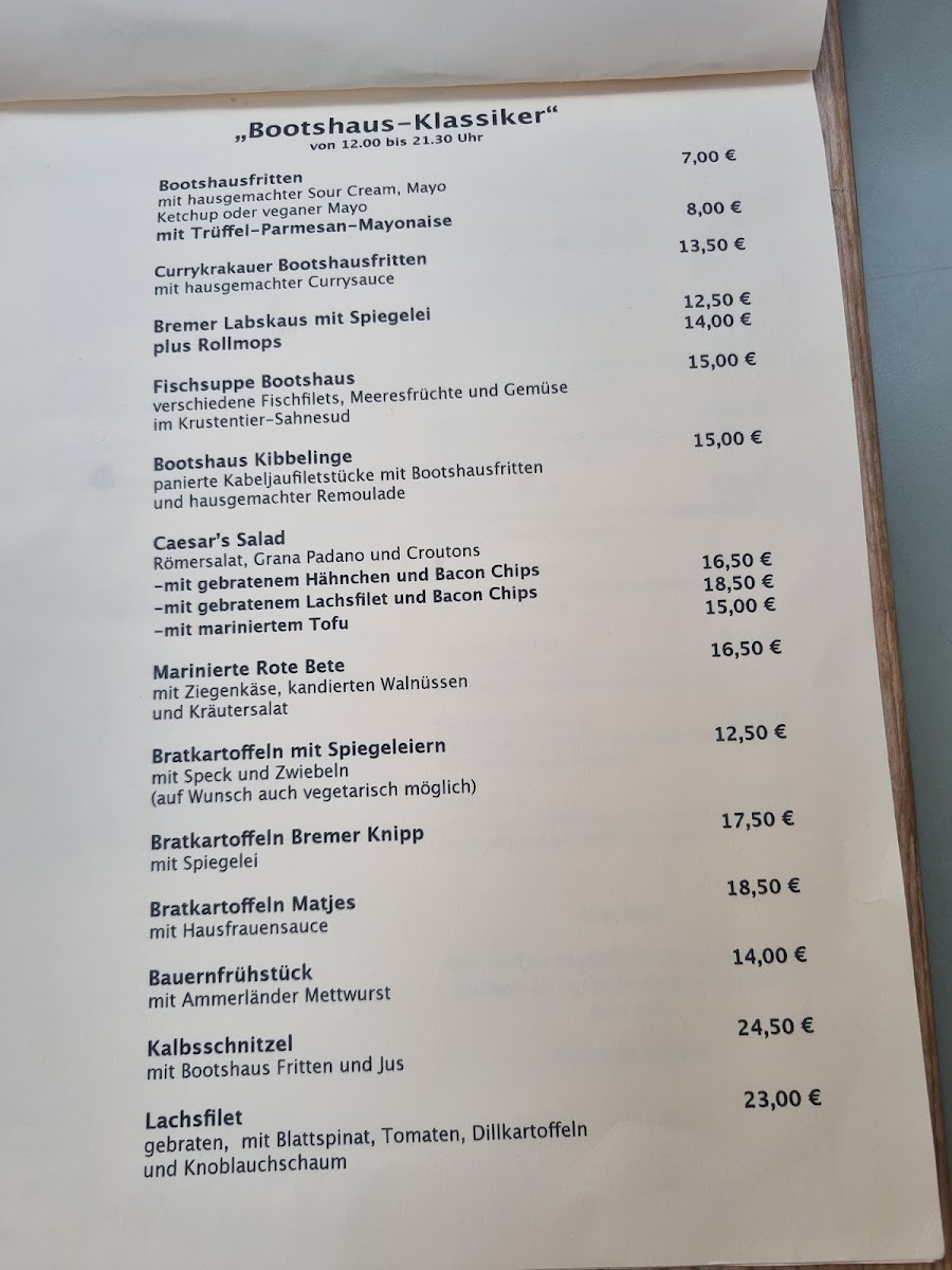 With a spacious terrace, it's an ideal spot to enjoy summery afternoons with friends. The attentive staff further elevates the experience, ensuring every need is met with a smile. Whether indulging in local specialties like Bremer Labskaus or savoring a decadent dessert, everything is prepared with care and attention to detail. While it may not be the cheapest option, the delicious food and warm ambiance deliver exceptional value, making Bootshaus am Weserbogen a must-visit culinary destination.